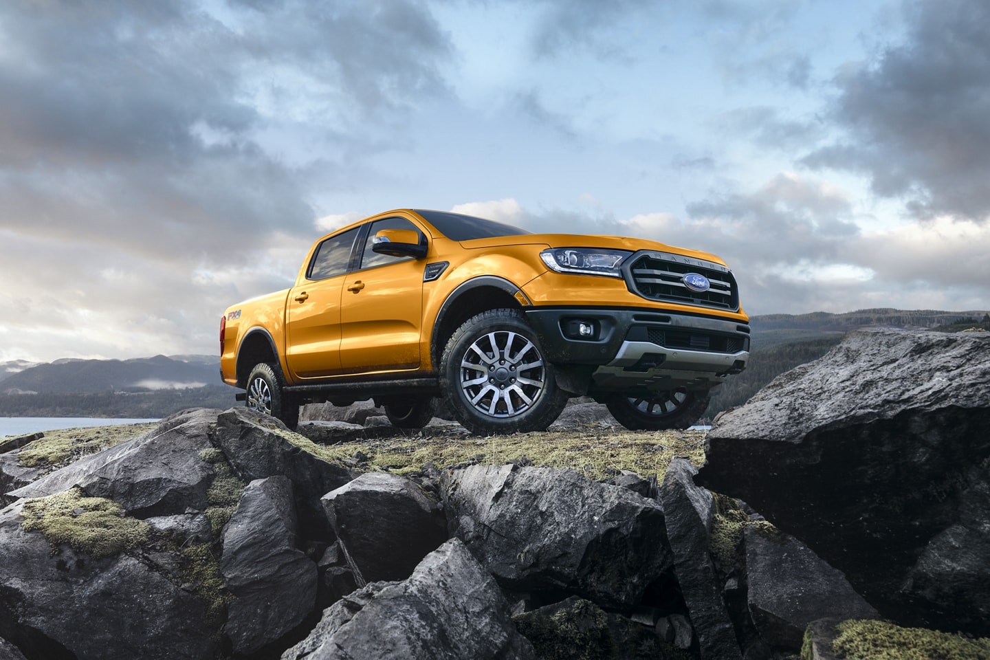 With three dynamic trim levels to choose from, it's easy to find the 2021 Ranger that's right for you. The first thing you'll notice about the XL is the iconic blue Ford oval showcased by an athletic black mesh grille. If you add the STX Special Edition Package, your Ranger will come with machine-edged black alloy wheels, fog lamps, and privacy glass windows with rear defrost functionality. An FX2 Package adds eye-catching decals, off-road OWL tires, and handy tow hooks. The XLT announces its arrival with a black and silver grille. Add the FX4 Off-Road package for an exposed steel front bash plate and skid plates. The Ranger's top trim level, Lariat, comes equipped with a premium LED lighting group, a chrome bar grille, and integrated cargo light.