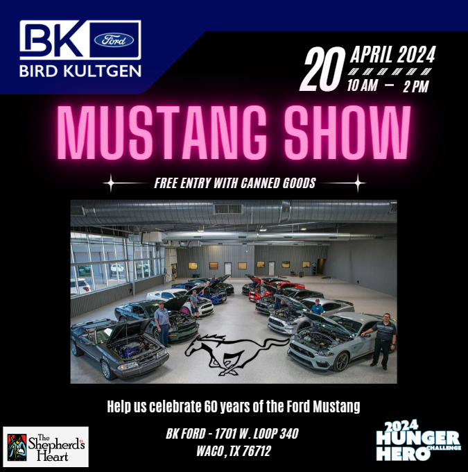 Plus, give back to the community! Bring a non-perishable food item to donate to Shepherd’s Heart Food Pantry. Let’s celebrate the Mustang’s legacy and make a difference together. See you there!
