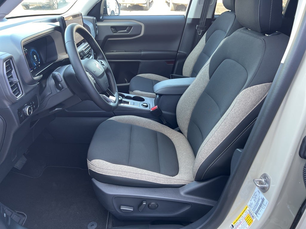 Desert Sand 2025 Ford Bronco Sport Big Bend 4WD 8-Speed Automatic 1.5L EcoBoost 4-Wheel Disc Brakes, 6 Speakers, ABS brakes, Air Conditioning, Alloy wheels, AM/FM radio: SiriusXM, AM/FM Stereo, Auto High-beam Headlights, Automatic temperature control, Brake assist, Cloth w/Easy-to-Clean Front Bucket Seats, Compass, Delay-off headlights, Driver door bin, Driver vanity mirror, Dual front impact airbags, Dual front side impact airbags, Electronic Stability Control, Emergency communication system: SYNC 4 911 Assist, Four wheel independent suspension, Front anti-roll bar, Front Bucket Seats, Front Center Armrest, Front reading lights, Fully automatic headlights, Heated door mirrors, Illuminated entry, Knee airbag, Low tire pressure warning, Occupant sensing airbag, Outside temperature display, Overhead airbag, Overhead console, Panic alarm, Passenger door bin, Passenger vanity mirror, Power door mirrors, Power steering, Power windows, Radio data system, Rear anti-roll bar, Rear Parking Sensors, Rear reading lights, Rear seat center armrest, Rear window defroster, Rear window wiper, Remote keyless entry, Security system, SiriusXM, Speed control, Speed-sensing steering, Speed-Sensitive Wipers, Split folding rear seat, Steering wheel mounted audio controls, SYNC 4 w/Enhanced Voice Recognition, Tachometer, Telescoping steering wheel, Tilt steering wheel, Traction control, Trip computer, Variably intermittent wipers, and Wheels: 17 Carbonized Gray-Painted Aluminum.