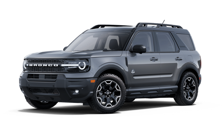 Carbonized Gray Metallic 2025 Ford Bronco Sport Outer Banks 4WD 8-Speed Automatic 1.5L EcoBoost 4-Wheel Disc Brakes, 6 Speakers, ABS brakes, Air Conditioning, Alloy wheels, AM/FM radio: SiriusXM, AM/FM Stereo, Auto High-beam Headlights, Auto-dimming Rear-View mirror, Automatic temperature control, Brake assist, Compass, Delay-off headlights, Driver door bin, Driver vanity mirror, Dual front impact airbags, Dual front side impact airbags, Electronic Stability Control, Emergency communication system: SYNC 4 911 Assist, Four wheel independent suspension, Front anti-roll bar, Front Bucket Seats, Front Center Armrest, Front Driver/Passenger Seat Back Map Pockets, Front dual zone A/C, Front fog lights, Front reading lights, Fully automatic headlights, Garage door transmitter, Heated door mirrors, Heated front seats, Heated steering wheel, Illuminated entry, Knee airbag, Low tire pressure warning, Memory seat, Occupant sensing airbag, Outside temperature display, Overhead airbag, Overhead console, Panic alarm, Passenger door bin, Passenger vanity mirror, Power door mirrors, Power driver seat, Power passenger seat, Power steering, Power windows, Premium Trimmed Front Bucket Seats w/Ebony/Roast, Radio data system, Rain sensing wipers, Rear anti-roll bar, Rear Parking Sensors, Rear reading lights, Rear seat center armrest, Rear window defroster, Rear window wiper, Remote keyless entry, Security system, SiriusXM, Speed control, Speed-sensing steering, Speed-Sensitive Wipers, Split folding rear seat, Steering wheel mounted audio controls, SYNC 4 w/Enhanced Voice Recognition, Tachometer, Telescoping steering wheel, Tilt steering wheel, Traction control, Trip computer, Variably intermittent wipers, and Wheels: 18 Ebony Black-Painted Aluminum.