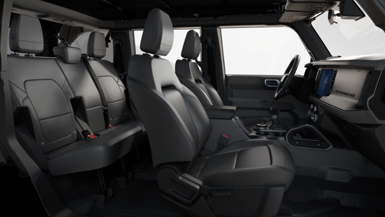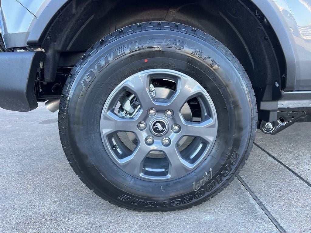 Carbonized Gray Metallic 2025 Ford Bronco Big Bend 4WD 10-Speed Automatic 2.3L EcoBoost I-4 4-Wheel Disc Brakes, 4.46 Axle Ratio, 7 Speakers, ABS brakes, Air Conditioning, Alloy wheels, AM/FM radio: SiriusXM with 360L, AM/FM Stereo, Auto High-beam Headlights, Brake assist, Cloth Bucket Seats, Compass, Delay-off headlights, Driver door bin, Driver vanity mirror, Dual front impact airbags, Dual front side impact airbags, Electronic Stability Control, Emergency communication system: 911 Assist, Exterior Parking Camera Rear, Front anti-roll bar, Front Bucket Seats, Front Center Armrest, Front reading lights, Front wheel independent suspension, Fully automatic headlights, Heated door mirrors, Illuminated entry, Integrated roll-over protection, Internet access capable: FordPass Connect, Leather Shift Knob, Low tire pressure warning, Occupant sensing airbag, Outside temperature display, Overhead airbag, Overhead console, Panic alarm, Passenger door bin, Passenger vanity mirror, Power door mirrors, Power steering, Power windows, Radio data system, Remote keyless entry, Security system, SiriusXM w/360L, Speed control, Split folding rear seat, Steering wheel mounted audio controls, SYNC 4, Tachometer, Telescoping steering wheel, Tilt steering wheel, Traction control, Trip computer, Variably intermittent wipers, and Wheels: 17 Carbonized Gray-Painted Aluminum.