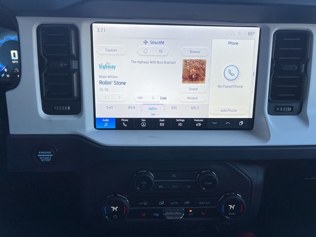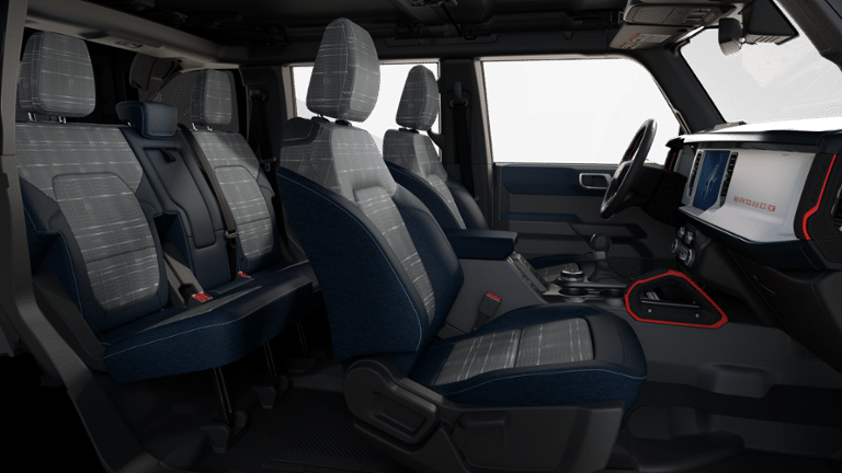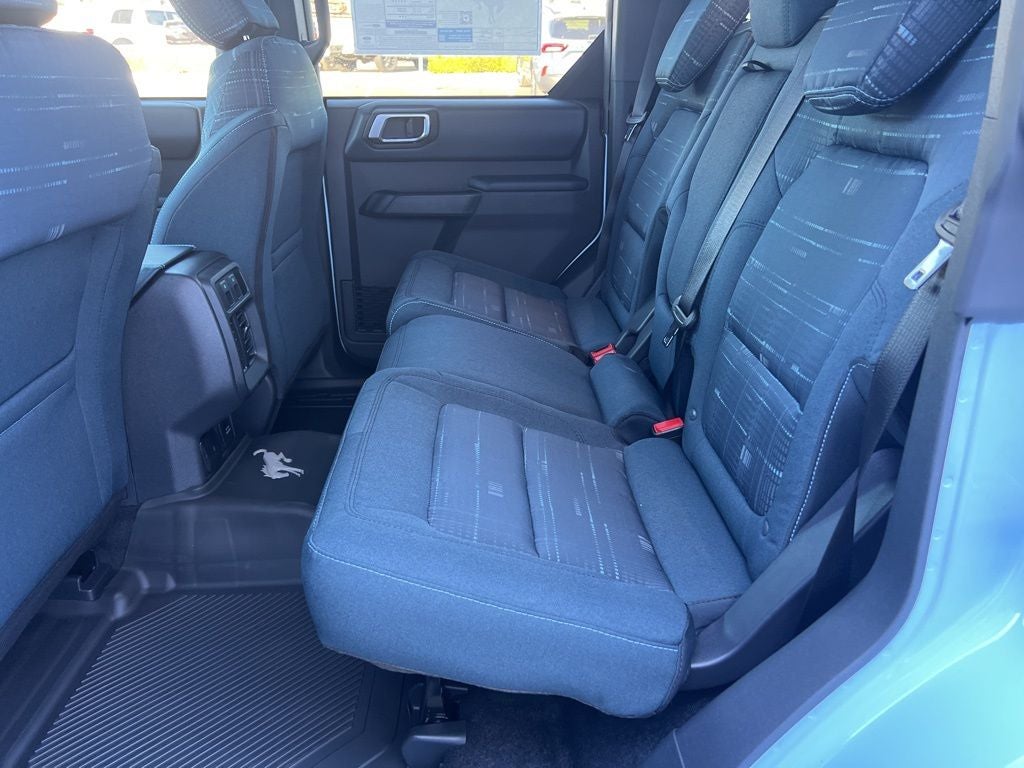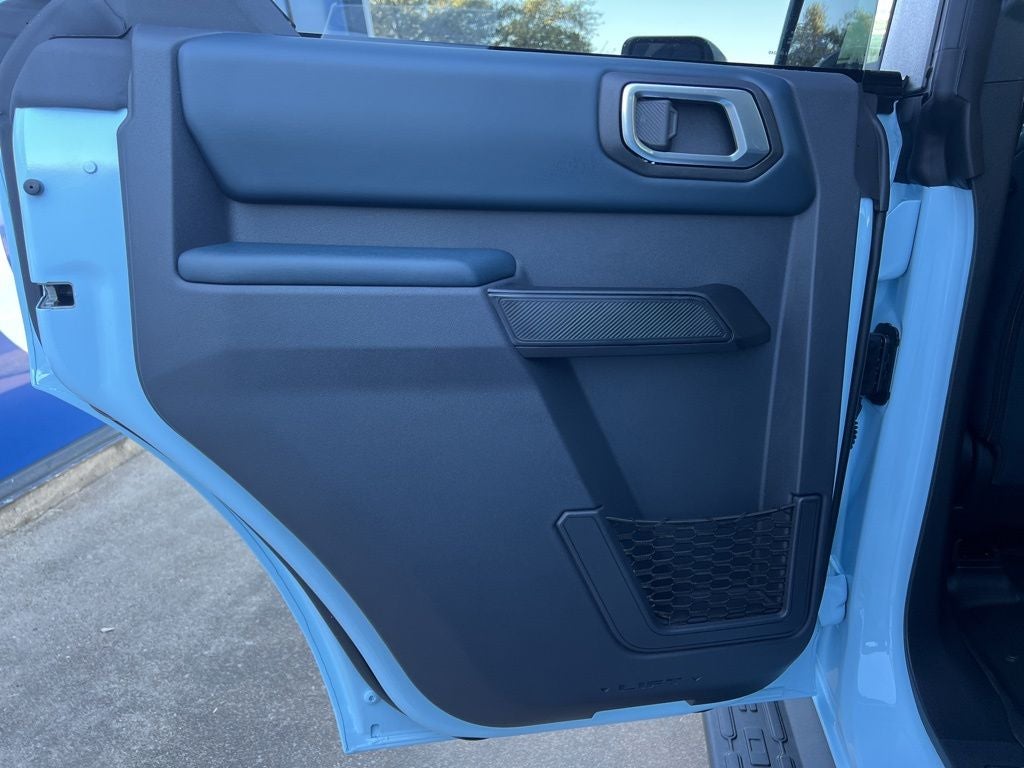 Robins Egg Blue 2025 Ford Bronco Heritage Edition 4WD 10-Speed Automatic 2.7L EcoBoost V6 4-Wheel Disc Brakes, 7 Speakers, ABS brakes, Air Conditioning, Alloy wheels, AM/FM radio: SiriusXM with 360L, AM/FM Stereo, Auto High-beam Headlights, Auto-dimming Rear-View mirror, Automatic temperature control, Brake assist, Compass, Connected Navigation, Convertible HardTop, Convertible roof lining, Delay-off headlights, Driver door bin, Driver vanity mirror, Dual front impact airbags, Dual front side impact airbags, Electronic Stability Control, Emergency communication system: 911 Assist, Exterior Parking Camera Rear, Front anti-roll bar, Front Bucket Seats, Front Center Armrest, Front dual zone A/C, Front fog lights, Front reading lights, Front wheel independent suspension, Fully automatic headlights, Glass rear window, Heated door mirrors, Heated front seats, Heated steering wheel, Illuminated entry, Integrated roll-over protection, Internet access capable: FordPass Connect, Leather Shift Knob, Low tire pressure warning, Navigation system: Connected Navigation, Occupant sensing airbag, Outside temperature display, Overhead airbag, Overhead console, Panic alarm, Passenger door bin, Passenger vanity mirror, Plaid Cloth Front Heated Bucket Seats, Power door mirrors, Power steering, Power windows, Radio data system, Rear window defroster, Rear window wiper, Remote keyless entry, Security system, SiriusXM w/360L, Speed control, Split folding rear seat, Steering wheel mounted audio controls, SYNC 4, Tachometer, Telescoping steering wheel, Tilt steering wheel, Traction control, Trip computer, Variably intermittent wipers, and Wheels: 17 Unique White.