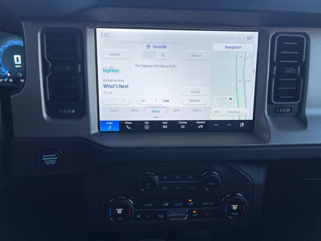 Marsh Gray 2025 Ford Bronco Outer Banks 4WD 10-Speed Automatic 2.7L EcoBoost V6 18 Bright Machined Aluminum Wheels, 3.73 Axle Ratio, 4-Wheel Disc Brakes, 7 Speakers, ABS brakes, Air Conditioning, Alloy wheels, AM/FM radio: SiriusXM with 360L, AM/FM Stereo, Auto High-beam Headlights, Auto-dimming Rear-View mirror, Automatic temperature control, Brake assist, Compass, Connected Navigation, Delay-off headlights, Driver door bin, Driver vanity mirror, Dual front impact airbags, Dual front side impact airbags, Electronic Stability Control, Emergency communication system: 911 Assist, Exterior Parking Camera Rear, Front anti-roll bar, Front Bucket Seats, Front Center Armrest, Front dual zone A/C, Front fog lights, Front reading lights, Front wheel independent suspension, Fully automatic headlights, Heated door mirrors, Heated front seats, Heated Leather-Trimmed/Vinyl Bucket Seats, Heated steering wheel, Illuminated entry, Integrated roll-over protection, Internet access capable: FordPass Connect, Leather Shift Knob, Low tire pressure warning, Navigation system: Connected Navigation, Occupant sensing airbag, Outside temperature display, Overhead airbag, Overhead console, Panic alarm, Passenger door bin, Passenger vanity mirror, Power door mirrors, Power driver seat, Power passenger seat, Power steering, Power windows, Radio data system, Rear seat center armrest, Remote keyless entry, Security system, SiriusXM w/360L, Speed control, Split folding rear seat, Steering wheel mounted audio controls, SYNC 4, Tachometer, Telescoping steering wheel, Tilt steering wheel, Traction control, Trip computer, Variably intermittent wipers, and Voltmeter.