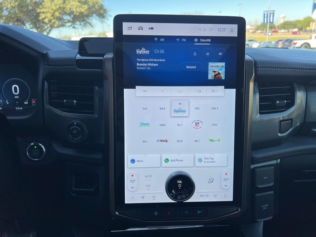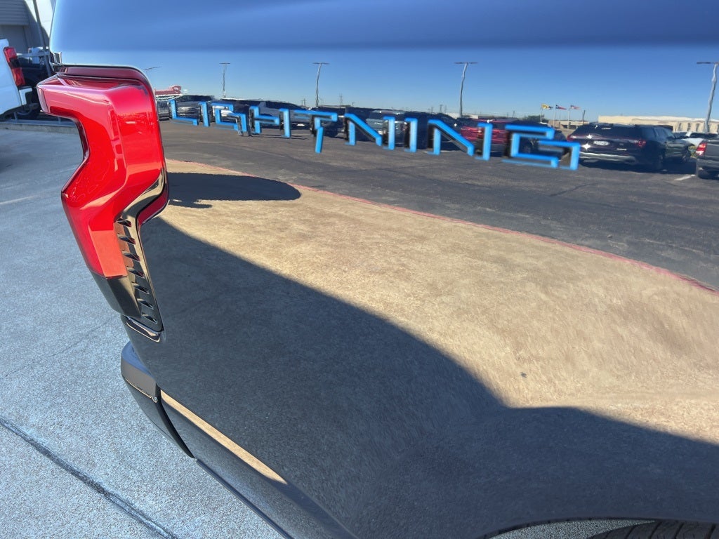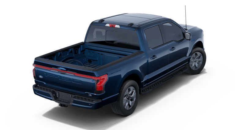 Antimatter Blue Metallic 2025 Ford F-150 Lightning Lariat AWD Single-Speed Automatic Electric Motor 4-Wheel Disc Brakes, 8 Speakers, ABS brakes, ActiveX Trimmed Heated & Ventilated Seats, Adjustable pedals, Air Conditioning, Alloy wheels, Auto High-beam Headlights, Auto tilt-away steering wheel, Auto-dimming door mirrors, Auto-dimming Rear-View mirror, Automatic temperature control, Brake assist, Bumpers: body-color, Compass, Delay-off headlights, Driver door bin, Driver vanity mirror, Dual front impact airbags, Dual front side impact airbags, Electronic Stability Control, Emergency communication system: SYNC 4 911 Assist, Four wheel independent suspension, Front anti-roll bar, Front Bucket Seats, Front Center Armrest, Front dual zone A/C, Front reading lights, Fully automatic headlights, Heated door mirrors, Heated front seats, Heated rear seats, Heated steering wheel, Illuminated entry, Illuminated running boards, Knee airbag, Low tire pressure warning, Memory seat, Navigation system: Connected Navigation, Occupant sensing airbag, Outside temperature display, Overhead airbag, Overhead console, Panic alarm, Passenger door bin, Passenger vanity mirror, Pedal memory, Power door mirrors, Power driver seat, Power moonroof, Power passenger seat, Power steering, Power windows, Radio data system, Radio: B&O Sound System by Bang & Olufsen, Rain sensing wipers, Rear anti-roll bar, Rear reading lights, Rear seat center armrest, Rear step bumper, Rear window defroster, Remote keyless entry, Security system, Speed control, Speed-sensing steering, Split folding rear seat, Steering wheel memory, Steering wheel mounted audio controls, SYNC 4A w/Enhanced Voice Recognition, Telescoping steering wheel, Tilt steering wheel, Traction control, Trip computer, Turn signal indicator mirrors, Variably intermittent wipers, Ventilated front seats, and Wheels: 20 Alloy Dark Carbonized Gray.