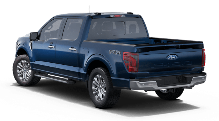 Blue Metallic 2025 Ford F-150 Lariat 4WD 10-Speed Automatic 5.0L V8 3.31 Axle Ratio, 4-Wheel Disc Brakes, 8 Speakers, ABS brakes, ActiveX Trimmed Bucket Seats, Adjustable pedals, Air Conditioning, Alloy wheels, AM/FM radio: SiriusXM with 360L, Auto High-beam Headlights, Auto-dimming door mirrors, Auto-dimming Rear-View mirror, Automatic temperature control, Brake assist, Bumpers: chrome, Chrome wheels, Compass, Delay-off headlights, Driver door bin, Driver vanity mirror, Dual front impact airbags, Dual front side impact airbags, Electronic Stability Control, Emergency communication system: SYNC 4 911 Assist, Front anti-roll bar, Front Bucket Seats, Front Center Armrest, Front dual zone A/C, Front fog lights, Front reading lights, Front wheel independent suspension, Fully automatic headlights, Garage door transmitter, Heated door mirrors, Heated front seats, Heated steering wheel, Illuminated entry, Low tire pressure warning, Memory seat, Navigation system: Connected Navigation, Occupant sensing airbag, Outside temperature display, Overhead airbag, Overhead console, Panic alarm, Passenger door bin, Passenger vanity mirror, Pedal memory, Power door mirrors, Power driver seat, Power passenger seat, Power steering, Power windows, Radio data system, Radio: B&O Sound System by Bang & Olufsen, Rain sensing wipers, Rear reading lights, Rear seat center armrest, Rear step bumper, Rear window defroster, Remote keyless entry, Security system, Speed control, Split folding rear seat, Steering wheel mounted audio controls, SYNC 4 w/Enhanced Voice Recognition, Tachometer, Telescoping steering wheel, Tilt steering wheel, Traction control, Trip computer, Turn signal indicator mirrors, Variably intermittent wipers, Ventilated front seats, Voltmeter, and Wheels: 18 Chrome-Like PVD.