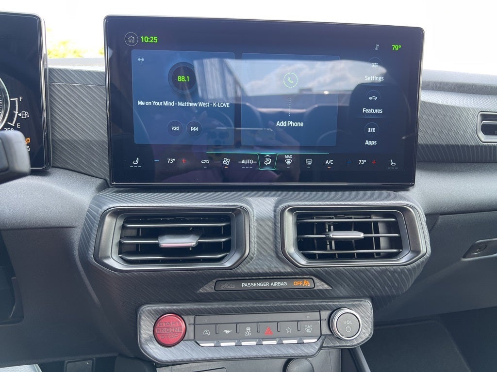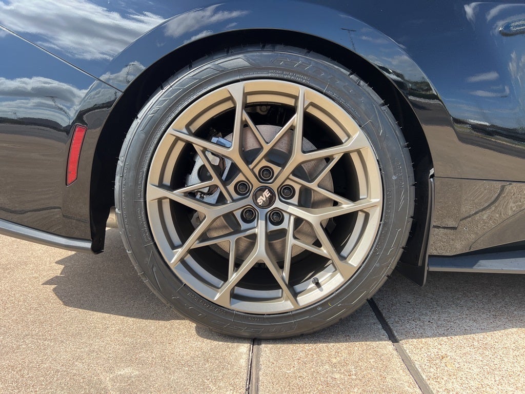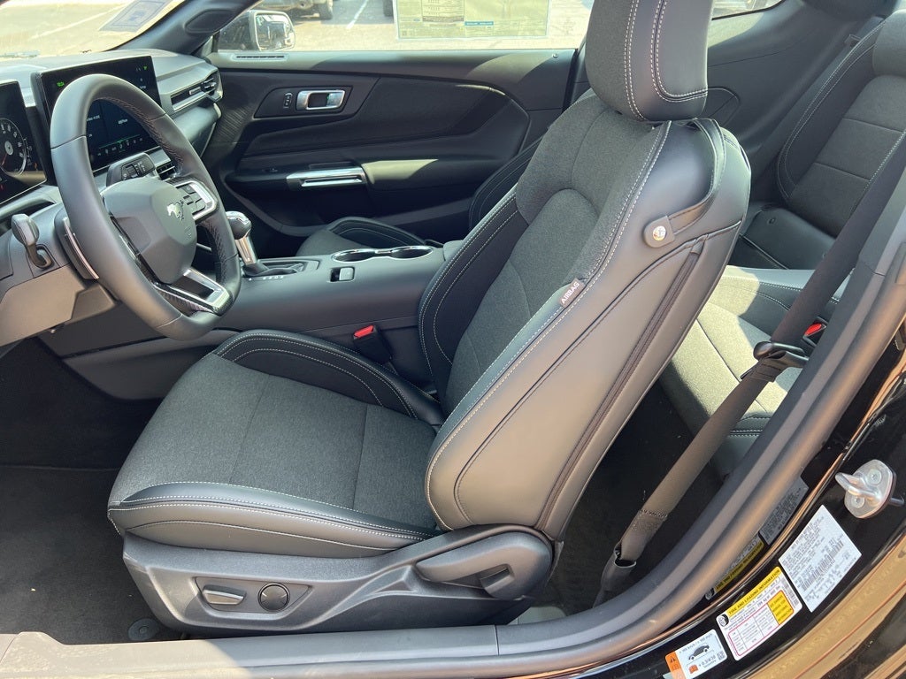 Shadow Black 2025 Ford Mustang GT RWD 10-Speed Automatic 5.0L V8 Ti-VCT ABS brakes, Alloy wheels, Compass, Electronic Stability Control, Front dual zone A/C, Illuminated entry, Low tire pressure warning, Remote keyless entry, Traction control, 4-Wheel Disc Brakes, 6 Speakers, Air Conditioning, AM/FM radio, AM/FM Stereo, Auto High-beam Headlights, Automatic temperature control, Brake assist, Bumpers: body-color, Cloth Bucket Seats, Delay-off headlights, Driver door bin, Driver vanity mirror, Dual front impact airbags, Dual front side impact airbags, Emergency communication system: 911 Assist, Exterior Parking Camera Rear, Four wheel independent suspension, Front anti-roll bar, Front Bucket Seats, Front Center Armrest, Front reading lights, Fully automatic headlights, Knee airbag, Leather Shift Knob, Leather steering wheel, Occupant sensing airbag, Outside temperature display, Overhead airbag, Overhead console, Panic alarm, Passenger door bin, Passenger vanity mirror, Power door mirrors, Power steering, Power windows, Radio data system, Rain sensing wipers, Rear anti-roll bar, Rear Parking Sensors, Rear window defroster, Speed control, Speed-sensing steering, Speed-Sensitive Wipers, Split folding rear seat, Spoiler, Sport steering wheel, Steering wheel mounted audio controls, SYNC 4, Tachometer, Telescoping steering wheel, Tilt steering wheel, Trip computer, Variably intermittent wipers, Voltmeter, and Wheels: 18 x 8.5 Ebony Black Painted Aluminum. ABS brakes, Alloy wheels, Compass, Electronic Stability Control, Front dual zone A/C, Illuminated entry, Low tire pressure warning, Remote keyless entry, Traction control.
