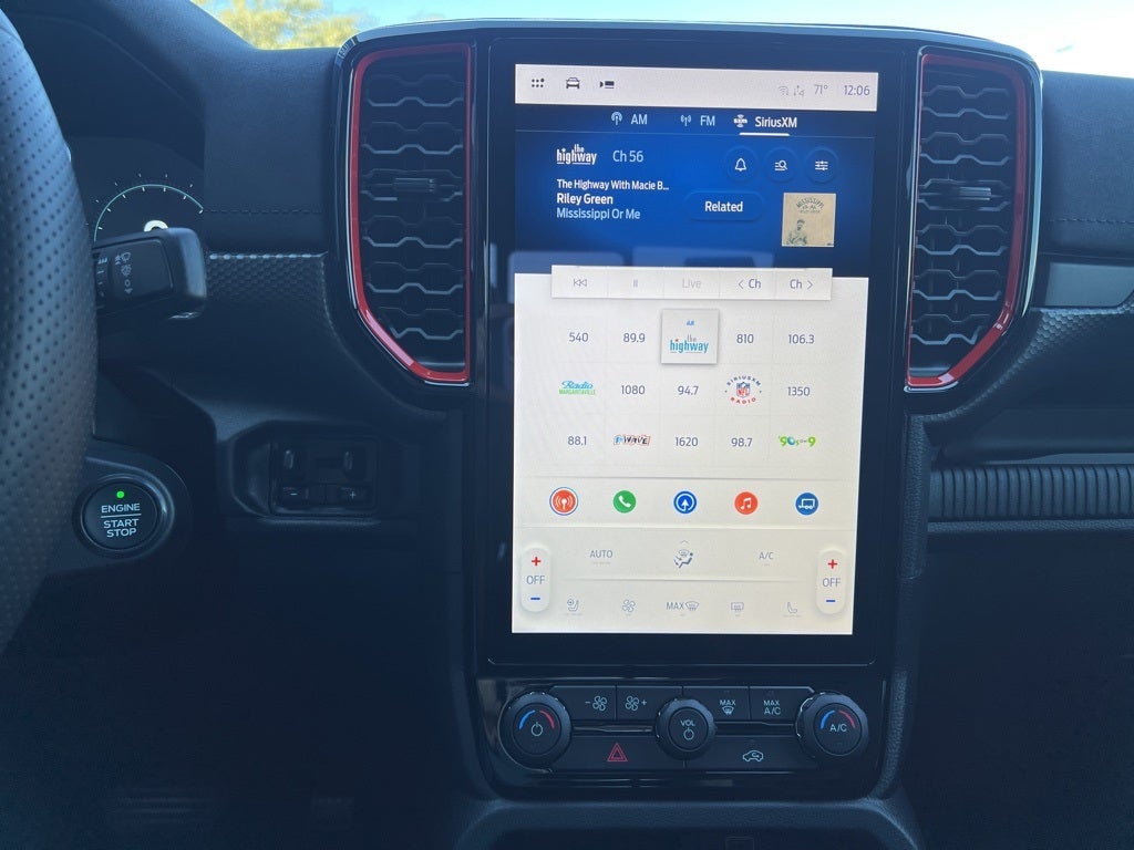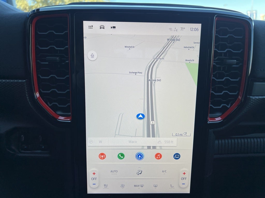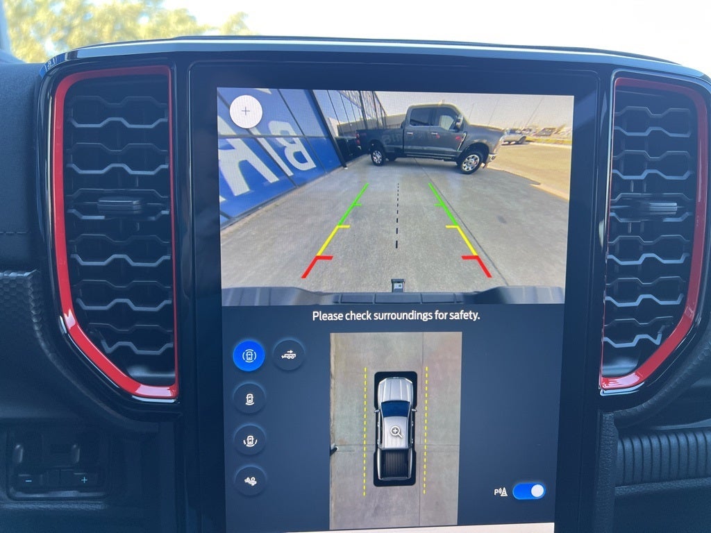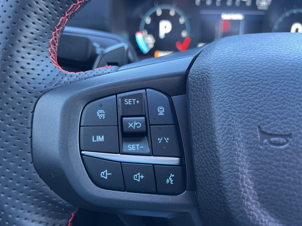 Shadow Black 2025 Ford Ranger Raptor 4WD 10-Speed Automatic 3.0L EcoBoost V6 10 Speakers, 4-Wheel Disc Brakes, 4.27 Axle Ratio, ABS brakes, Air Conditioning, Alloy wheels, AM/FM radio: SiriusXM, Auto High-beam Headlights, Auto-dimming Rear-View mirror, Automatic temperature control, Brake assist, Compass, Delay-off headlights, Driver door bin, Driver vanity mirror, Dual front impact airbags, Dual front side impact airbags, Electronic Stability Control, Emergency communication system: SYNC 4 911 Assist, Front anti-roll bar, Front Bucket Seats, Front Center Armrest, Front dual zone A/C, Front fog lights, Front reading lights, Front wheel independent suspension, Fully automatic headlights, Garage door transmitter, Heated door mirrors, Heated front seats, Heated steering wheel, Illuminated entry, Internet access capable: FordPass Connect 4G, Leather Shift Knob, Leather steering wheel, Leather-Trimmed Front Heated Bucket Seats, Low tire pressure warning, Memory seat, Navigation system: Connected Navigation, Occupant sensing airbag, Outside temperature display, Overhead airbag, Overhead console, Panic alarm, Passenger door bin, Passenger vanity mirror, Power door mirrors, Power driver seat, Power passenger seat, Power steering, Power windows, Radio: B&O Sound System by Bang & Olufsen, Rain sensing wipers, Rear reading lights, Rear seat center armrest, Rear step bumper, Rear window defroster, Remote keyless entry, Security system, SiriusXM Satellite Radio, Speed control, Speed-sensing steering, Steering wheel mounted audio controls, SYNC 4A, Telescoping steering wheel, Tilt steering wheel, Traction control, Trip computer, Turn signal indicator mirrors, Variably intermittent wipers, Voltmeter, and Wheels: 17 Gray-Painted Aluminum.