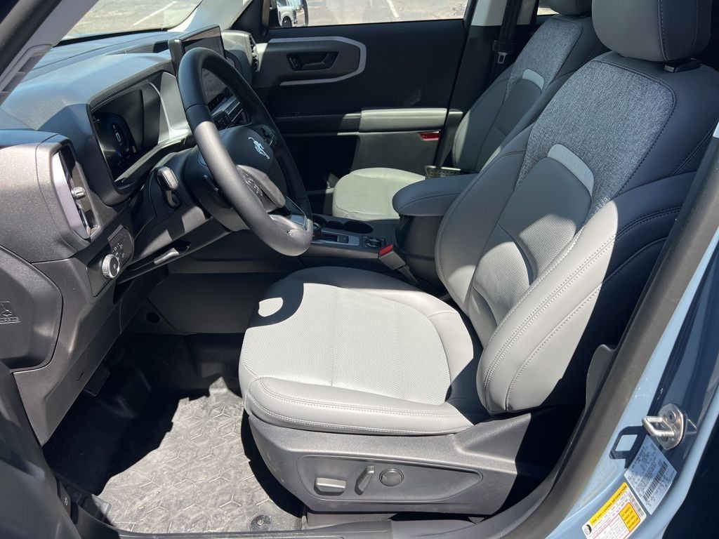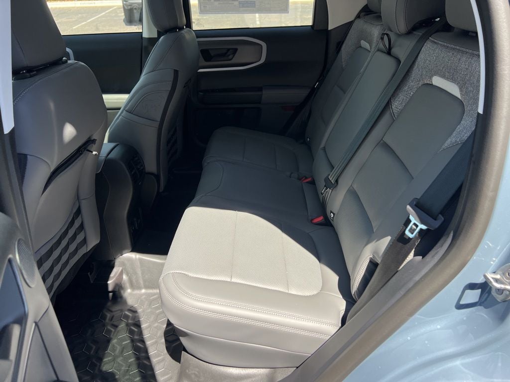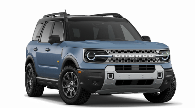 Azure Gray Metallic Tri-Coat 2026 Ford Bronco Sport Badlands 4WD 8-Speed Automatic EcoBoost 2.0L I4 GTDi DOHC Turbocharged VCT Ford Connectivity Package (1-Year Included), Internet access capable: 5G Modem - Ford Connectivity Package, 4-Wheel Disc Brakes, 6 Speakers, ABS brakes, Air Conditioning, Alloy wheels, AM/FM radio: SiriusXM with 360L, AM/FM Stereo, Apple CarPlay/Android Auto, Auto High-beam Headlights, Auto-dimming Rear-View mirror, Automatic temperature control, Brake assist, Compass, Delay-off headlights, Driver door bin, Driver vanity mirror, Dual front impact airbags, Dual front side impact airbags, Electronic Stability Control, Emergency communication system: SYNC 4 911 Assist, Exterior Parking Camera Rear, Four wheel independent suspension, Front anti-roll bar, Front Bucket Seats, Front Center Armrest, Front fog lights, Front reading lights, Fully automatic headlights, Heated door mirrors, Heated front seats, Heated steering wheel, Illuminated entry, Knee airbag, Leather-Trimmed Heated Front Sport Contour Bucket Seats, Low tire pressure warning, Memory seat, Occupant sensing airbag, Outside temperature display, Overhead airbag, Overhead console, Panic alarm, Passenger door bin, Passenger vanity mirror, Power door mirrors, Power driver seat, Power passenger seat, Power steering, Power windows, Radio data system, Rear anti-roll bar, Rear reading lights, Rear seat center armrest, Rear window defroster, Rear window wiper, Remote keyless entry, Security system, SiriusXM with 360L, Speed control, Speed-sensing steering, Speed-Sensitive Wipers, Split folding rear seat, Steering wheel mounted audio controls, SYNC 4 with Enhanced Voice Recognition, Tachometer, Telescoping steering wheel, Tilt steering wheel, Traction control, Trip computer, Variably intermittent wipers, and Wheels: 17 Matte Black-Painted Aluminum.