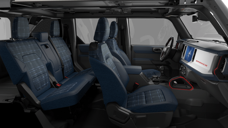 Avalanche Gray 2026 Ford Bronco Heritage Edition 4WD 10-Speed Automatic 2.7L EcoBoost V6 Ford Connectivity Package (1-Year Included), 4-Wheel Disc Brakes, 7 Speakers, ABS brakes, Air Conditioning, Alloy wheels, AM/FM radio: SiriusXM with 360L, AM/FM Stereo, Auto High-beam Headlights, Auto-dimming Rear-View mirror, Automatic temperature control, Brake assist, Compass, Connected Navigation, Convertible HardTop, Convertible roof lining, Delay-off headlights, Driver door bin, Driver vanity mirror, Dual front impact airbags, Dual front side impact airbags, Electronic Stability Control, Emergency communication system: 911 Assist, Exterior Parking Camera Rear, Front anti-roll bar, Front Bucket Seats, Front Center Armrest, Front dual zone A/C, Front fog lights, Front reading lights, Front wheel independent suspension, Fully automatic headlights, Glass rear window, Heated door mirrors, Heated front seats, Heated steering wheel, Illuminated entry, Integrated roll-over protection, Low tire pressure warning, Navigation system: Connected Navigation, Occupant sensing airbag, Outside temperature display, Overhead airbag, Overhead console, Panic alarm, Passenger door bin, Passenger vanity mirror, Plaid Cloth Front Heated Bucket Seats, Power door mirrors, Power steering, Power windows, Radio data system, Rear window defroster, Rear window wiper, Remote keyless entry, Security system, SiriusXM with 360L, Speed control, Split folding rear seat, Steering wheel mounted audio controls, SYNC 4, Tachometer, Telescoping steering wheel, Tilt steering wheel, Traction control, Trip computer, Variably intermittent wipers, and Wheels: 17 Unique White.