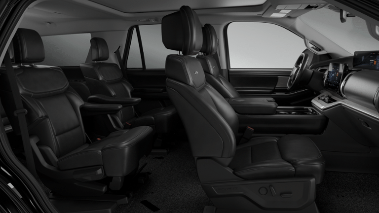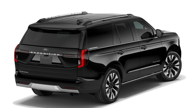 Agate Black Metallic 2026 Ford Expedition Platinum 4WD 10-Speed Automatic EcoBoost 3.5L V6 GTDi DOHC 24V Twin Turbocharged Ford Connectivity Package (1-Year Included), 10 Speakers, 2nd Row Power-Folding Captain's Chairs, 3.73 Axle Ratio, 3rd row seats: split-bench, 4-Wheel Disc Brakes, ABS brakes, Air Conditioning, Alloy wheels, AM/FM radio: SiriusXM with 360L, Apple CarPlay/Android Auto, Auto High-beam Headlights, Auto-dimming door mirrors, Auto-dimming Rear-View mirror, Automatic temperature control, Brake assist, Bumpers: body-color, Compass, Delay-off headlights, Driver door bin, Driver vanity mirror, Dual front impact airbags, Dual front side impact airbags, Electronic Stability Control, Emergency communication system: 911 Assist, Exterior Parking Camera Rear, Ford Digital Experience, Four wheel independent suspension, Front anti-roll bar, Front Bucket Seats, Front Center Armrest, Front dual zone A/C, Front reading lights, Fully automatic headlights, Garage door transmitter, Genuine wood dashboard insert, Genuine wood door panel insert, Heated door mirrors, Heated front seats, Heated rear seats, Heated steering wheel, Illuminated entry, Leather steering wheel, Low tire pressure warning, Memory seat, Navigation System, Occupant sensing airbag, Outside temperature display, Overhead airbag, Overhead console, Panic alarm, Passenger door bin, Passenger vanity mirror, Power door mirrors, Power driver seat, Power moonroof: Vista Roof, Power passenger seat, Power steering, Power windows, Radio data system, Rain sensing wipers, Rear air conditioning, Rear anti-roll bar, Rear reading lights, Rear window defroster, Rear window wiper, Reclining 3rd row seat, Remote keyless entry, Security system, Speed control, Speed-sensing steering, Speed-Sensitive Wipers, Split folding rear seat, Spoiler, Steering wheel memory, Steering wheel mounted audio controls, Tachometer, Telescoping steering wheel, Tilt steering wheel, Traction control, Trip computer, Turn signal indicator mirrors, Variably intermittent wipers, Ventilated front seats, Voltmeter, and Wheels: 20 x 8.5 Ebony Bright Machined Aluminum.
