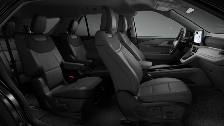 Agate Black Metallic 2026 Ford Explorer Active RWD 10-Speed Automatic 2.3L EcoBoost I-4 3rd row seats: bench, 4-Wheel Disc Brakes, 6 Speakers, ABS brakes, Air Conditioning, Alloy wheels, AM/FM radio: SiriusXM with 360L, AM/FM Stereo, Apple CarPlay/Android Auto, Auto High-beam Headlights, Automatic temperature control, Brake assist, Bumpers: body-color, Compass, Delay-off headlights, Driver door bin, Driver vanity mirror, Dual front impact airbags, Dual front side impact airbags, Electronic Stability Control, Emergency communication system: 911 Assist, Exterior Parking Camera Rear, Four wheel independent suspension, Front anti-roll bar, Front Bucket Seats, Front Center Armrest, Front dual zone A/C, Front reading lights, Fully automatic headlights, Heated door mirrors, Illuminated entry, Knee airbag, Low tire pressure warning, Navigation System, Occupant sensing airbag, Outside temperature display, Overhead airbag, Overhead console, Panic alarm, Passenger door bin, Passenger vanity mirror, Power door mirrors, Power driver seat, Power steering, Power windows, Rear air conditioning, Rear anti-roll bar, Rear reading lights, Rear window defroster, Rear window wiper, Remote keyless entry, Security system, Speed control, Speed-sensing steering, Speed-Sensitive Wipers, Split folding rear seat, Spoiler, Steering wheel mounted audio controls, Tachometer, Telescoping steering wheel, Tilt steering wheel, Traction control, Trip computer, Variably intermittent wipers, and Wheels: 18 Sparkle Silver-Painted Aluminum.