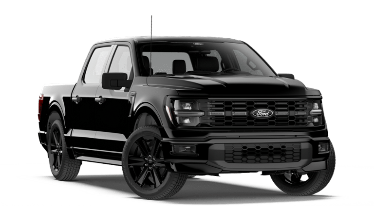 Agate Black Metallic 2026 Ford F-150 STX 4WD 10-Speed Automatic 5.0L V8 Ford Connectivity Package (1-Year Included), GVWR: 6,650 lbs Payload Package, Internet access capable: 5G Modem - Ford Connectivity Package, 3.55 Axle Ratio, 4-Wheel Disc Brakes, 6 Speakers, ABS brakes, Air Conditioning, Alloy wheels, AM/FM radio: SiriusXM with 360L, Auto High-beam Headlights, Brake assist, Bumpers: body-color, Compass, Delay-off headlights, Driver door bin, Dual front impact airbags, Dual front side impact airbags, Electronic Stability Control, Emergency communication system: SYNC 4 911 Assist, Front anti-roll bar, Front Bucket Seats, Front Center Armrest, Front reading lights, Front wheel independent suspension, Fully automatic headlights, Heated door mirrors, Illuminated entry, Low tire pressure warning, Occupant sensing airbag, Outside temperature display, Overhead airbag, Overhead console, Panic alarm, Passenger door bin, Passenger vanity mirror, Power door mirrors, Power steering, Power windows, Radio data system, Radio: AM/FM Stereo with SiriusXM 360L, Rear step bumper, Rear window defroster, Remote keyless entry, Security system, Speed control, Split folding rear seat, Steering wheel mounted audio controls, SYNC 4 with Enhanced Voice Recognition, Tachometer, Telescoping steering wheel, Tilt steering wheel, Traction control, Trip computer, Unique Sport Cloth 40/Console/40 Front-Seats, Variably intermittent wipers, and Wheels: 18 Gloss Black.